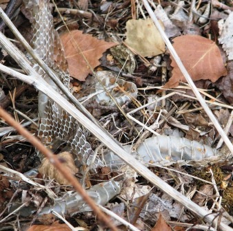 Anne Wiikeri havaitsi käärmeen nahan. (nostettu parempaan kuvauspaikkaan) |